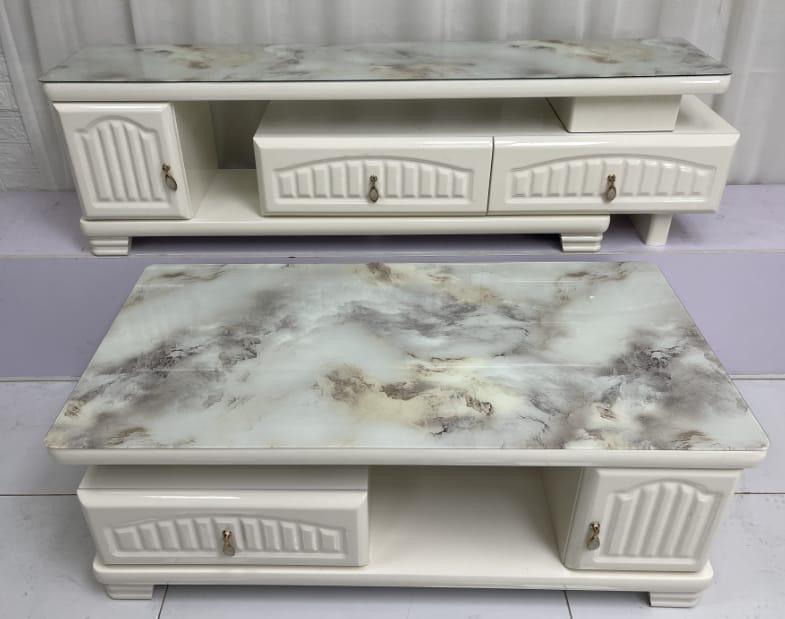 Upgrade your living area with this modern ceramic glass TV stand and coffee table set, blending luxury and practicality. Perfect for those seeking durable living room furniture with storage, this set ensures a stylish space. Order now to transform your room with this chic ceramic glass furniture set!